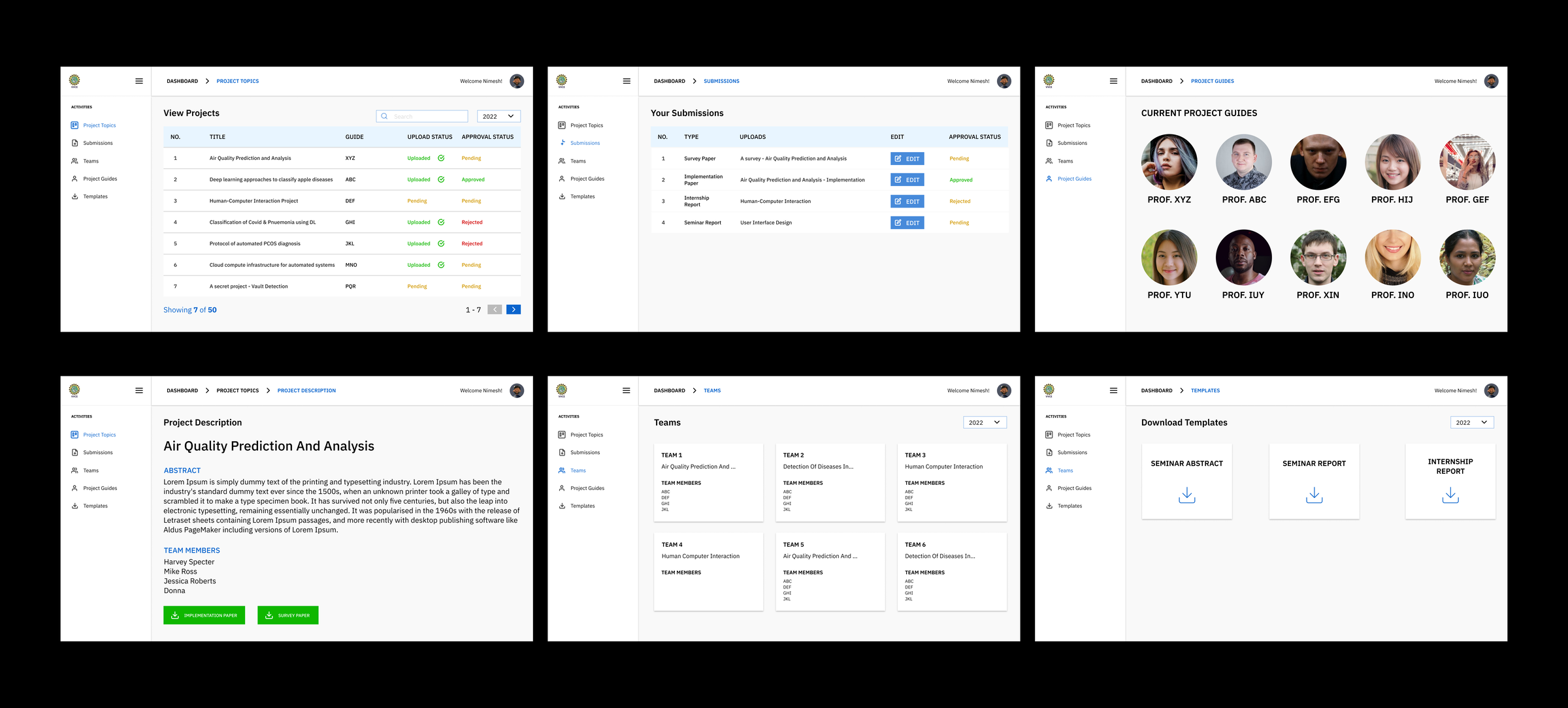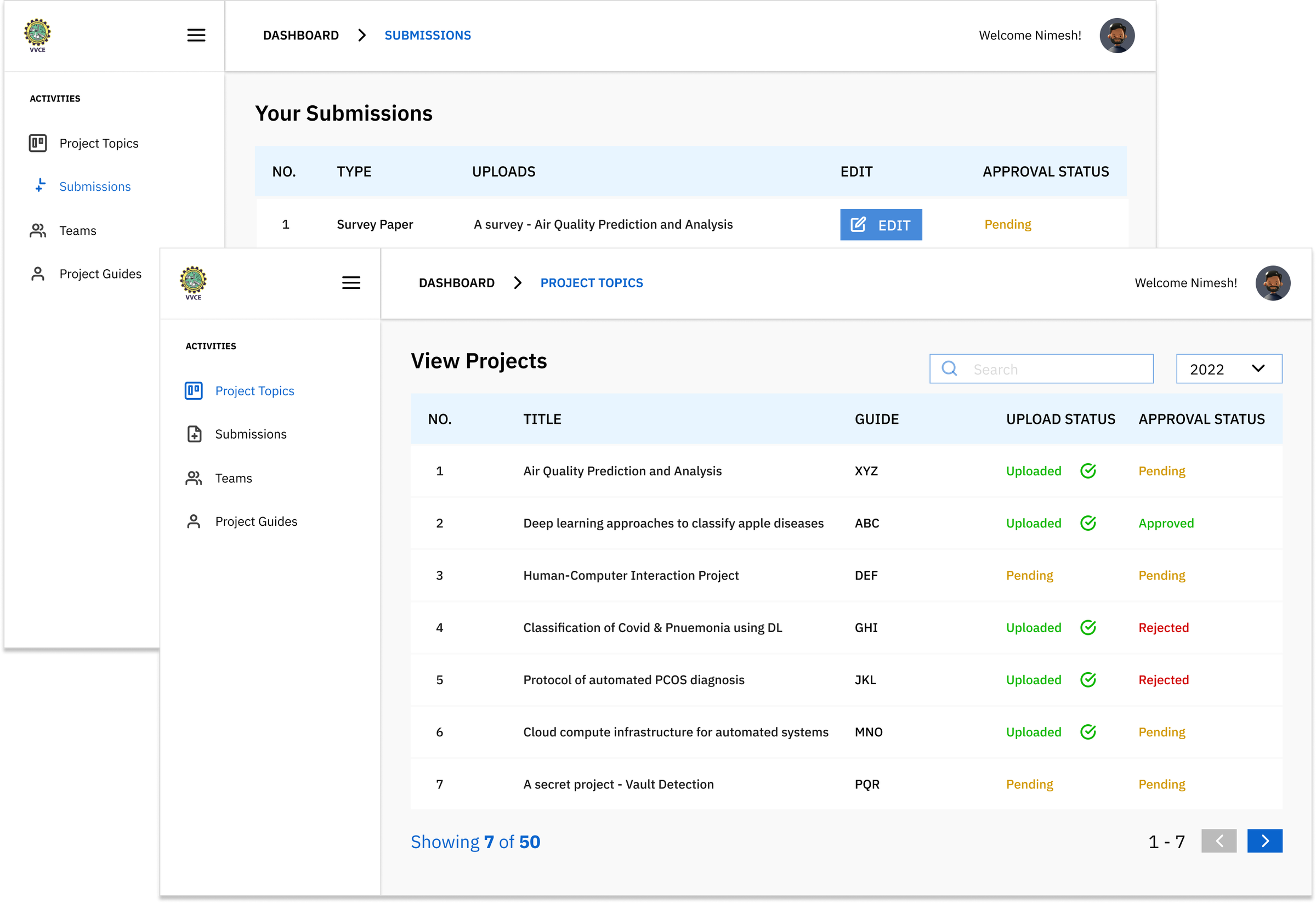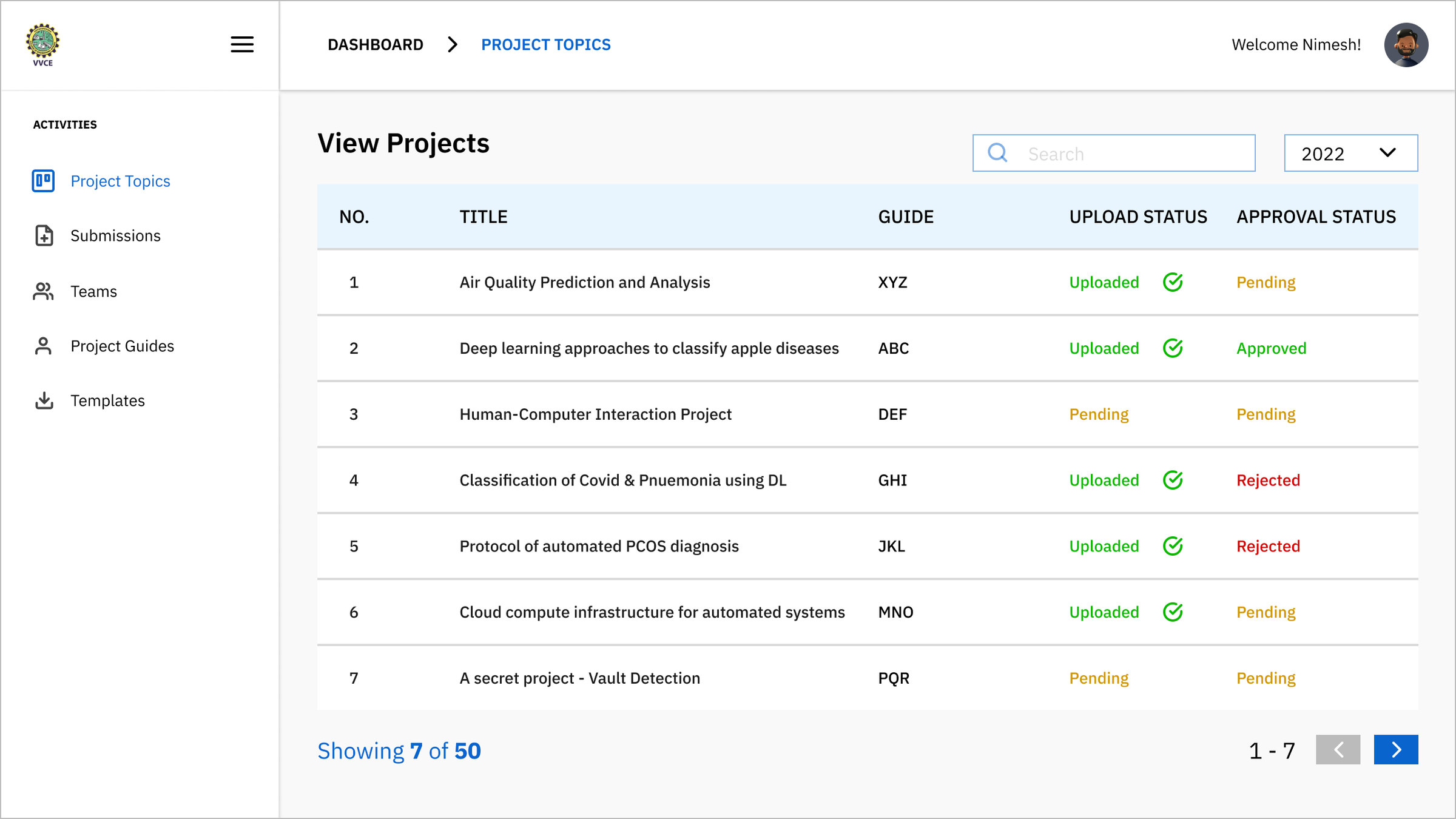 Students can filter the year and view the corresponding projects