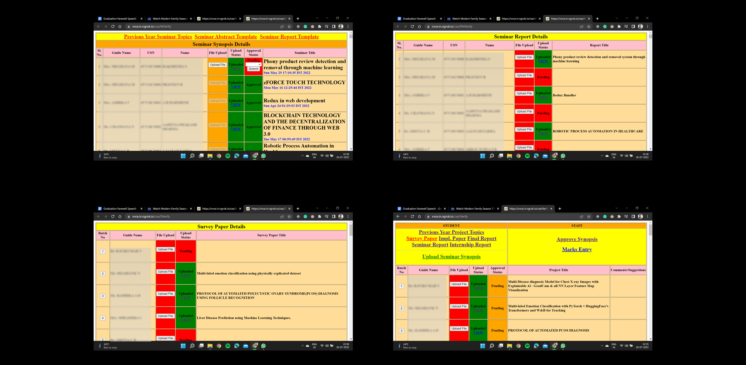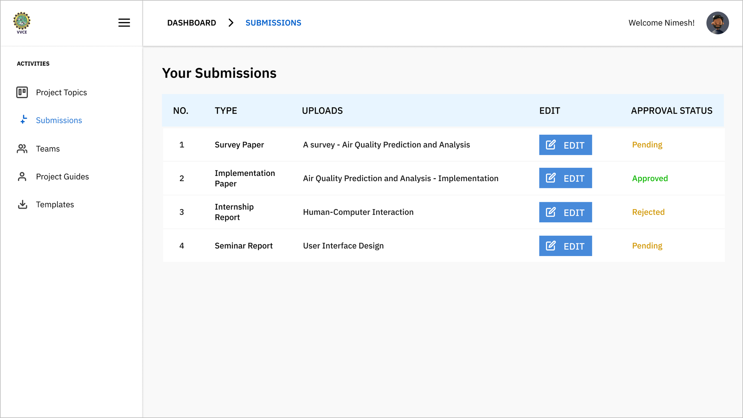 CSProjectsMooo is a CS department website portal at Vidyavardhaka College of Engineering that allows students to upload all the items related to their final-year undergraduate studies including project work, internship and seminar reports, and survey papers, and implementation papers.