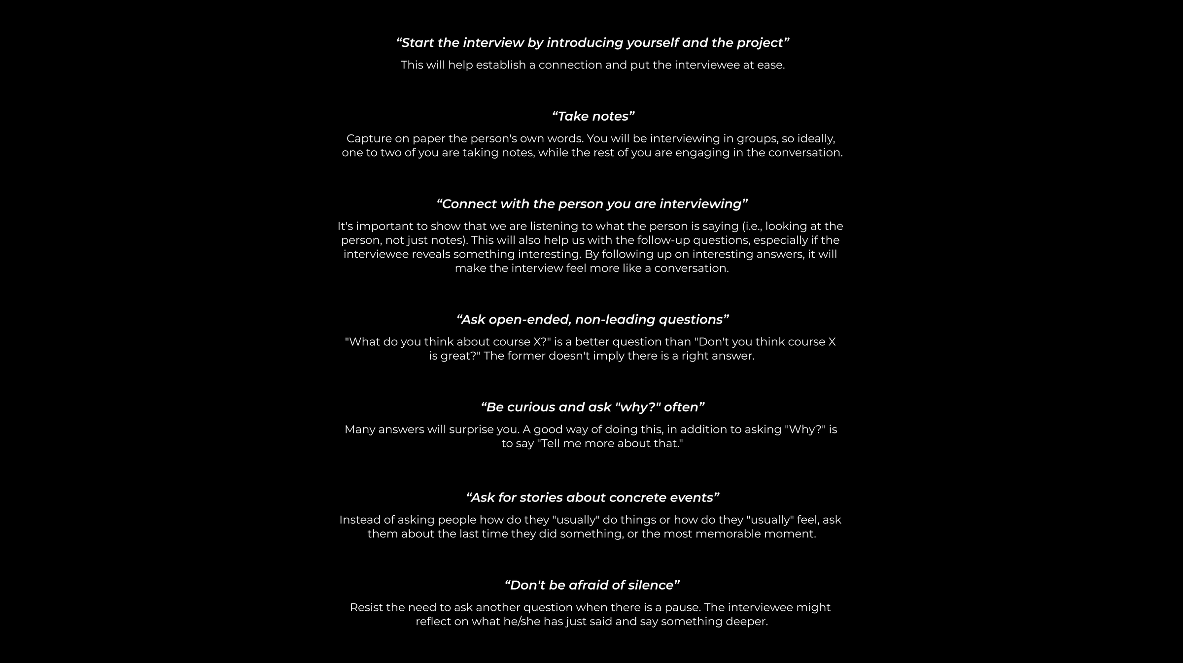When interviewing users/participants, be friendly and start the interview with a goal in mind.