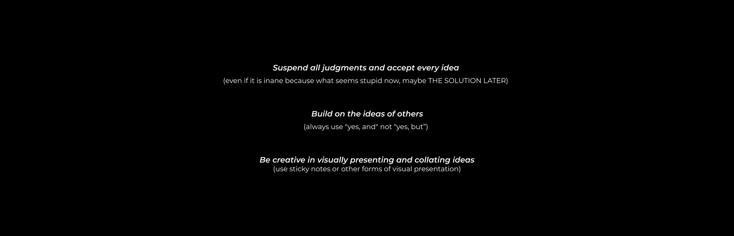 Using the HMW question from deliverable 1, we started to ideate possible solutions for the opportunity. We followed the following guidelines for the successful brainstorming process: