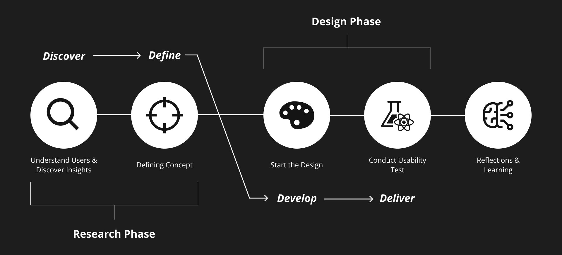 With four ideas for the concept, I proceed to the design phase to transform ideas onto interface screens and then to testable prototypes.