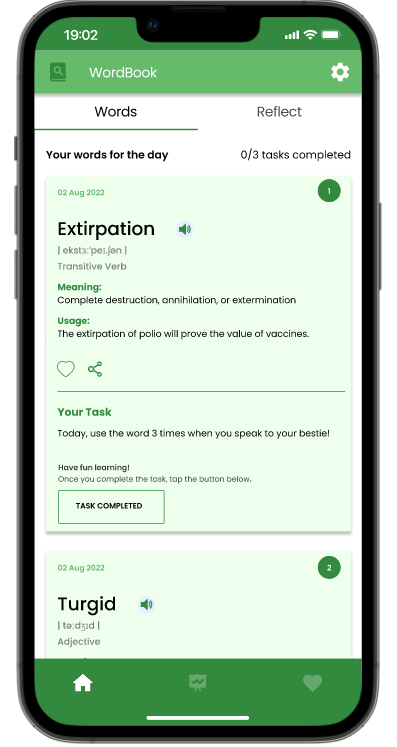 - Users can also like the words and access them from their favorite screen.